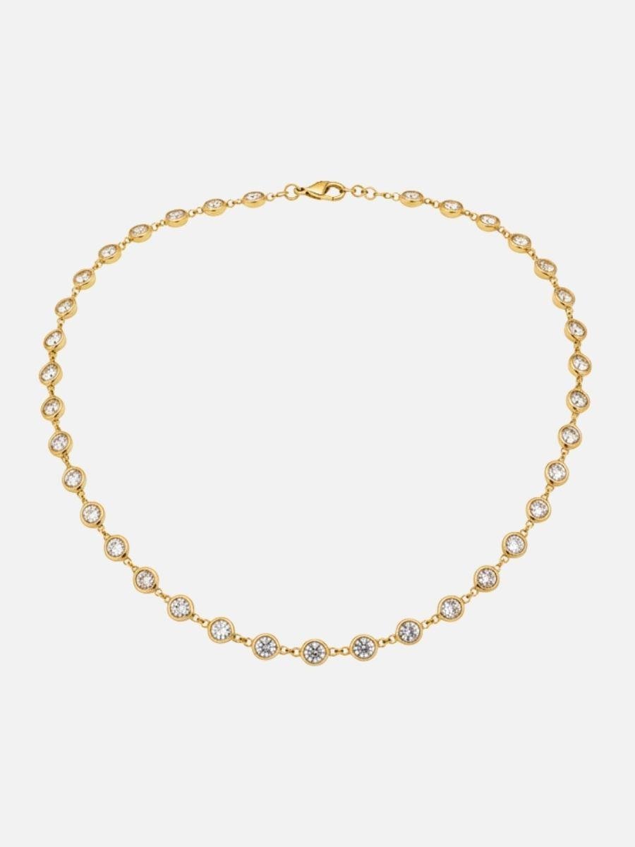 - Kolye zinciri beyaz zirkon taşıyla detaylandırılmıştır.
